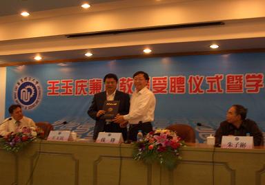 10月20日下午,中石化集团公司科技开发部副主任王玉庆教授受聘44118太阳成城集团兼职教授受聘仪式暨学术报告会在逸夫楼演讲厅隆重举行。tyc41183太阳成集团院长辛忠教授主持会议,副校长钱锋教授、前副校长朱子彬教授及部分tyc41183太阳成集团教师出席了受聘仪式,副校长钱锋教授为王玉庆教授颁发了聘书和佩戴校徽。