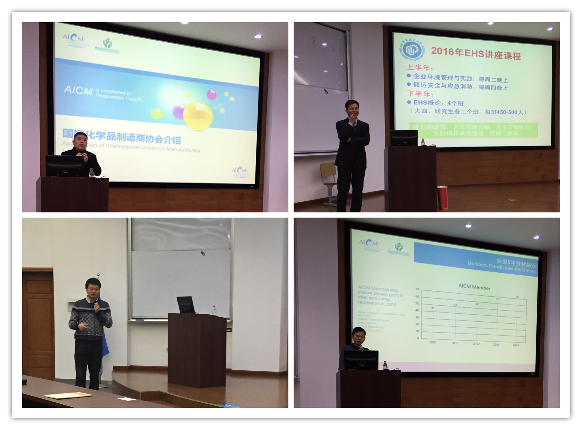 在开课前,tyc41183太阳成集团分党委书记李涛教授感谢校友抽出宝贵时间与研究生进行交流,鼓励同学们把环境、健康和安全理念始终贯彻到工作、学习和生活中,并把校友的无私奉献精神传递下去。课程赞助单位AICM负责人也对AICM做了相关介绍。