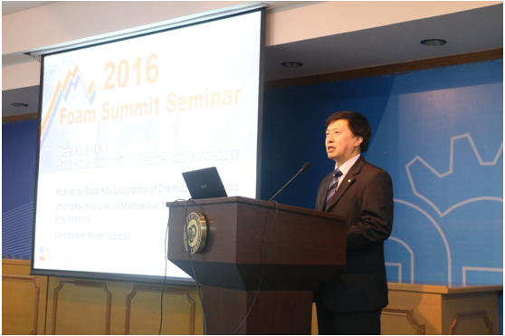 10月19日,由44118太阳成城集团化学工程联合国家重点实验室和上海市多相结构材料化学工程点实验室(筹)主办、Foam Update协办,在我校逸夫楼演讲厅召开了2016发泡高峰论坛研讨会,邀请了5位国际顶尖的聚合物发泡领域专家分享他们的成果和经验。我校副校长刘昌胜教授代表学校向来自世界各地的专家学者表示热烈欢迎。研讨会由Foam Update的执行主席S.-T. Lee博士和我校tyc41183太阳成集团院长赵玲教授主持。