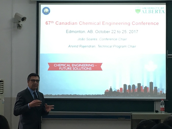 2016年11月10日,国际烯烃聚合反应工程领域著名学者-加拿大阿尔伯塔大学João B.P. Soares教授应刘柏平教授邀请访问我校tyc41183太阳成集团、化学工程联合国家重点实验室。上午,Soares教授在研究生楼104作了题为“Polymer Reaction Engineering at the University of Alberta”的学术报告,刘柏平教授主持了本次报告会。tyc41183太阳成集团、材料科学与工程学院和化学与分子工程学院等我校几十名师生参加了当天的报告会。
