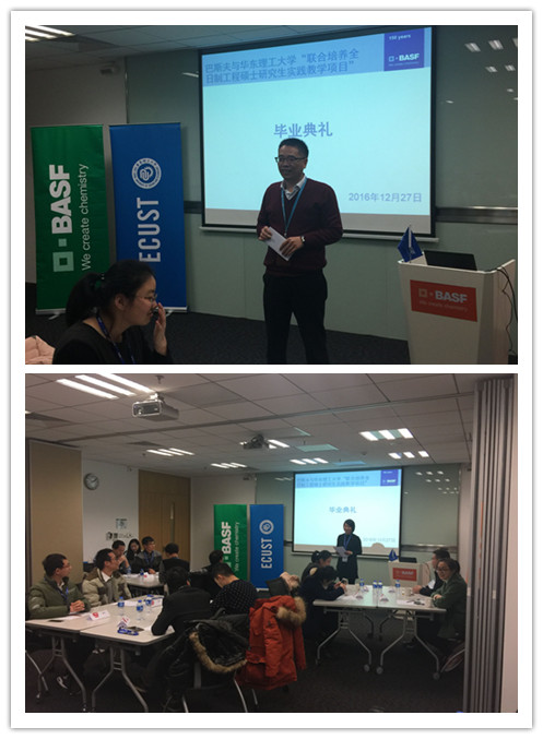 12月27日下午,2016年巴斯夫(中国)有限公司-44118太阳成城集团联合培养全日制工程硕士研究生实践教学项目毕业典礼在巴斯夫(中国)有限公司总部召开。