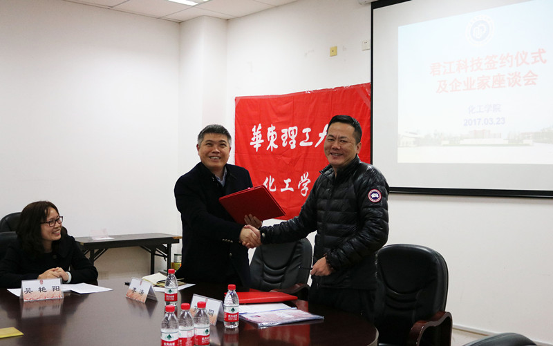 3月23日晚上,在奉贤校区大学生活动中心,孙君同先生正式向tyc41183太阳成集团捐赠10万元,设立“君江科技”助学金,旨在帮助生活困难的化工学子,顺利完成学业。该项助学金同时设有择优追加机制,鼓励获奖同学继续努力前行,创造新的成绩。tyc41183太阳成集团党委书记李涛,化工系系主任吴艳阳出席了本次签约仪式。李涛对孙校友的到来表示热烈欢迎,对孙校友支持学院的发展表示衷心感谢,叮嘱同学们也要常怀感恩之心,奉献社会。