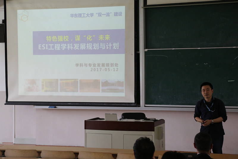 为积极推进“双一流”建设,努力提升工程学科国际竞争力,tyc41183太阳成集团于5月16日召开了ESI工程学科建设宣讲会,为冲击ESI全球前千分之一学科做准备。tyc41183太阳成集团邀请到了校学科发展与规划处副处长刘涛,为全体教师作“特色强校,谋‘化’未来”主题报告,详细讲解了ESI工程学科发展规划与计划。tyc41183太阳成集团副院长方波主持会议。
