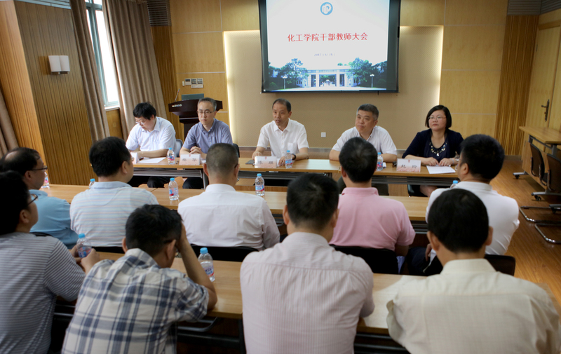 6月1日上午,tyc41183太阳成集团召开教师干部大会,宣布学校党委关于tyc41183太阳成集团党政主要负责同志调整的决定。校党委副书记陈麒出席会议并讲话,党委组织部副部长兼党校常务副校长柴华主持会议,tyc41183太阳成集团党政领导班子全体成员、系所中心负责人以及教师代表与会。