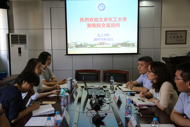 6月2日下午,北京化工大学化学工程学院副院长刘清雅等一行五人来到我院,就本科教学情况进行交流访问。tyc41183太阳成集团党委书记李涛、院长助理兼化工系主任吴艳阳以及化工系副系主任魏永明出席会议。