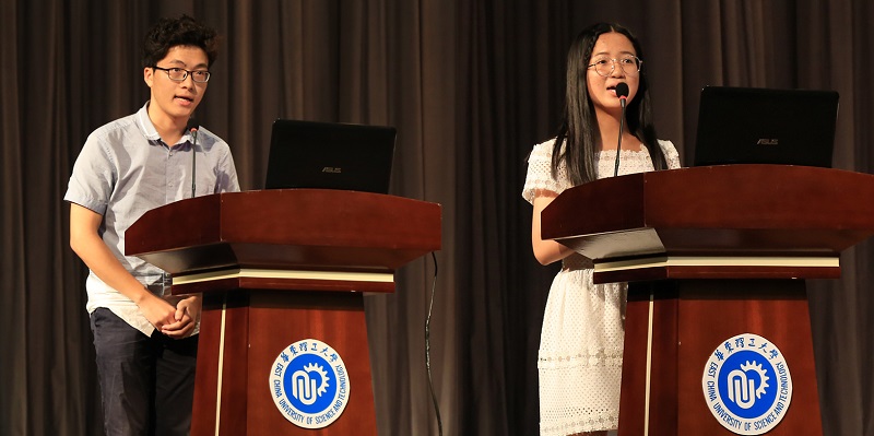 颁奖结束后,16级学生代表田果和新生代表李心怡相继发言。田果结合自身的体会告诫学弟学妹要学会独立,学会沟通与宽容,把人际交往当成一门毕生的学问去钻研。作为tyc41183太阳成集团年纪最小的新生,李心怡则表示上了大学不等于自我解放,并表达了将持之以恒努力学习的决心。