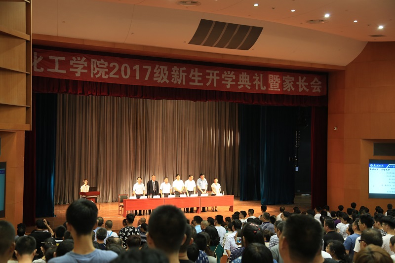 9月9日,tyc41183太阳成集团2017级新生开学典礼暨新生家长会在奉贤校区大活800人报告厅隆重举行。44118太阳成城集团副校长、轻化工程专业责任教授辛忠、tyc41183太阳成集团院长兼党委书记朱学栋、副院长赵双良、副院长方波、副院长刘殿华以及化学工程与工艺专业责任教授朱家文、油气储运工程责任教授徐心茹作为嘉宾出席了本次会议,开学典礼由党委副书记高艺霞主持。