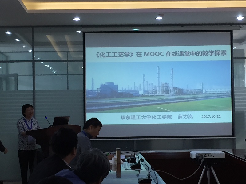 在当前围绕OBE理念和新工科建设进行化工学科课程建设的大背景下,为进一步推进我校化学工艺学科本科教学改革,促进专业建设,提升本课程教师教育教学水平,切实提高我校化工类专业人才培养质量,10月20日下午,我院化学工艺学教研组一行三人在组长薛为岚老师带领下赴中国石油大学参加了2017年度“全国化学工艺学课程教学研讨会”。薛老师在会议上做了题为“《化工工艺学》在MOOC在线课堂中的教学探索”报告,为各相关高校推进MOOC教育教学建设方面起到了很好的引领示范作用,取得了良好的效果。