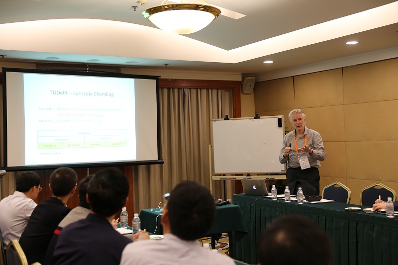 周兴贵教授首先就我校化学反应工程课程的教学理念和内容作了“Introduction to the CRE Course Teaching in ECUST”的专题报告,重点阐述了慕课建设、混合式教学(包括翻转课堂)、双语教学、ABET认证、课程建设等方面的内容。之后,国外专家对周兴贵教授提出的如何适应三个新趋势,即新概念反应器(面向过程强化)、新反应器性能(面向产品工程)、新学习方式(面向网络教学),进行了充分的讨论,并分别就各自学校的学制、课程分布情况、选课系统、化学反应工程课程教学情况、教学管理方式等方面作了专题报告和发言。国外专家充分肯定了我校在反应工程教学方面的理念和举措,认为我校的慕课建设和混合式教学具有示范和引领作用。他们在教学中的经验,尤其是如何在有限的学时和不断丰富的教学内容之间的平衡,以及如何提高知识学习效果和原理应用能力等方面的经验为我校化学反应工程课程建设和教学提供了宝贵的经验。