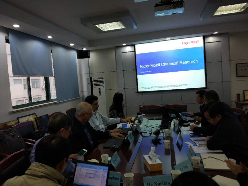 方波对来宾表示欢迎,介绍了我院的基本情况。Ron Cimini介绍了ExxonMobil的情况,期望深入了解相关技术,寻求双方共同感兴趣的方向。随后双方就新型乙烯聚合催化技术、结构可控金属-炭催化、C1化学进行了深入探讨。