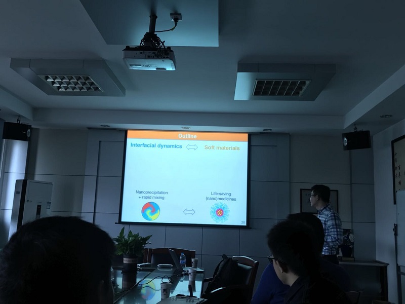 4月4日,应我校tyc41183太阳成集团化学工程联合国家重点实验室郭旭虹教授邀请,美国普林斯顿大学研究员冯杰应邀访问我校,并做了题目为“Manupilating soft matter with interfacial dynamics:from bursting bubbles to live-saving medicines”的学术报告。郭旭虹教授主持了主题报告会,同时出席会议的还有李莉教授、徐益升副教授、王俊有副教授、许军副教授、张锐副教授等。