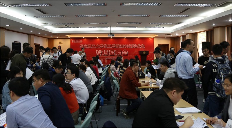 此次化工专场招聘会受到学院领导充分重视和多方大力支持,前期通过邮件邀请、电话联系、校友回访等方式多渠道开拓企业资源,共有包括华谊新材料、花王化学、普莱克斯、益海嘉里等国有、外资、民营企业近40家到场参会,提供三百余个岗位。学院还通过“就业领航号”、“化工求职风向标”、“化工青年集结地”校院公众号提前宣传,吸引了学院各专业的本硕毕业生参加招聘会;现场气氛热烈,同学们手持自己精心准备好的简历,积极与招聘人员交流,主动了解用人单位的情况。