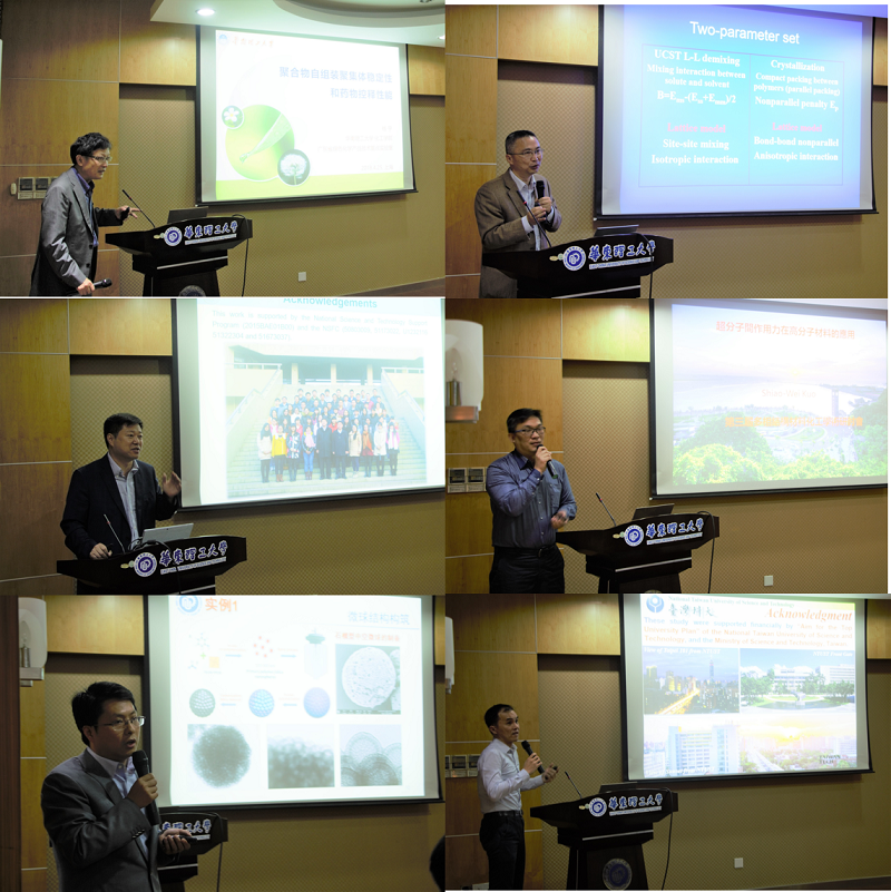 为加强多相结构材料领域的交流合作,探讨先进材料学术发展前沿,我校tyc41183太阳成集团“上海市多相结构材料化学工程重点实验室”以多相结构材料与产品工程”为主题,于4月25日在举办了“第三届多相结构材料化工研讨会”。研讨会邀请了多位国内多相结构材料领域的著名学者和优秀青年教师,包括“国家杰出青年科学基金”获得者华南理工大学钱宇教授、“国家杰出青年科学基金”获得者南京大学胡文兵教授、东华大学丁彬教授、台湾中山大学郭绍伟教授、台湾科技大学郑智嘉博士和我校tyc41183太阳成集团龙东辉教授等,围绕功能纳米纤维、超分子聚合物、多孔结构材料、聚合物相分离理论与计算、自组装聚集体等前沿热点领域进行了交流。我校副校长、上海市多相结构材料化学工程重点实验室主任辛忠教授出席了会议并致欢迎辞,来自我校多个学院的60余名师生参加了本次会议。