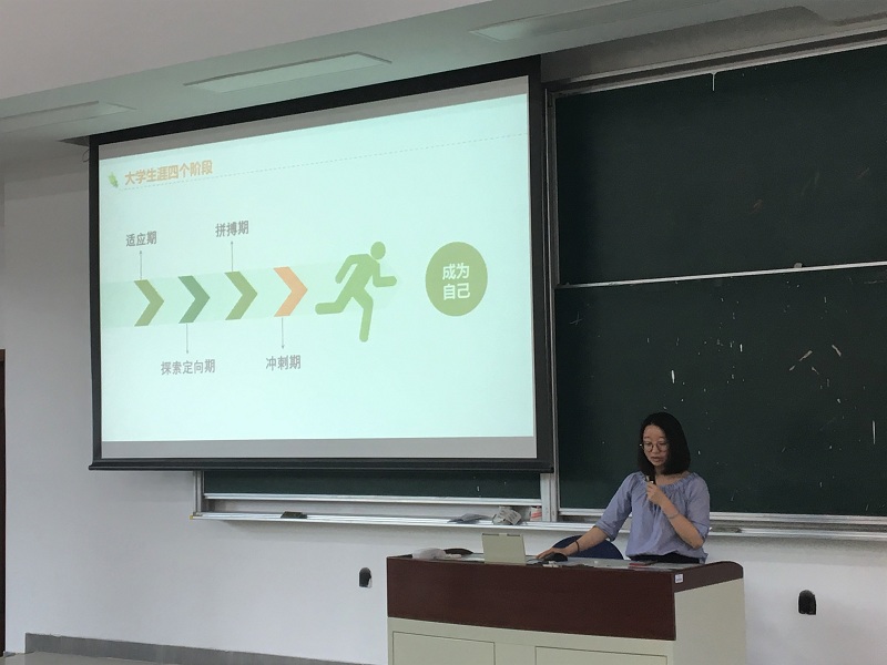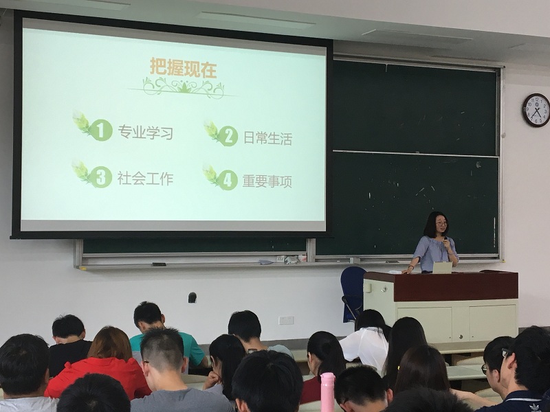 在“把握现在”环节,辅导员强莉从专业学习、日常生活、社会工作以及重要事项四个方面,向同学们进行了全面的讲解与指导。在专业学习方面,根据16级入校以来的成绩轨迹,分析出目前较为突出的学习问题,如失去信心、规划不明、自控力差、消极逃避等,并分别给出了解决建议,鼓励同学们坚定信心,刻苦付出,一份汗水就能换来一分收获。此外还就学籍管理规定和学籍处理情况进行了说明,警示同学们引以为戒,戒骄戒躁,严格要求自己。