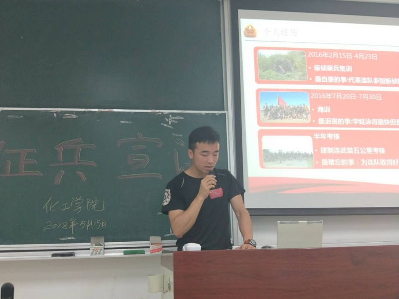 又是一年初夏五月,火热的征兵季开始了!为了让同学们更好地了解征兵条件及政策,具体直观地了解军营生活,切实做好2018年征兵宣传动员工作,tyc41183太阳成集团学工委在2018年5月15日晚6:00于教学楼D306教室举办了一场别开生面的征兵动员宣讲会。宣讲会由2016级辅导员强莉主持,宣讲嘉宾为tyc41183太阳成集团优秀退伍学生2015级谢禄霖同学,2016级翁新龙同学以及2017级张正雄同学。