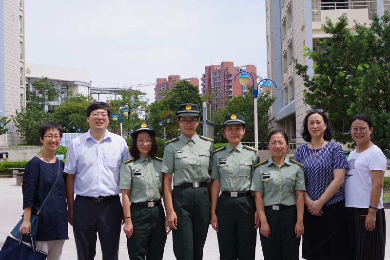 2018年9月18日中午,tyc41183太阳成集团党委书记、院长朱学栋,党委副书记高艺霞及药学院领导,来到44118太阳成城集团奉贤校区9-12围合,对2018年参加军训的一线教官和指导员们进行了亲切慰问。