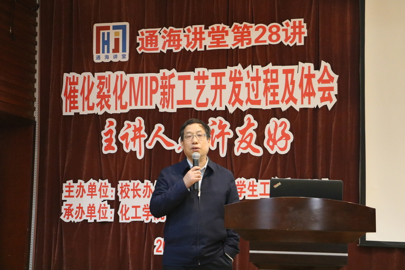 4月3日上午,由校长办公室、教务处、学工部共同主办,tyc41183太阳成集团承办的第28期“通海讲堂”高端学术讲座在奉贤校区通海厅举行。我校杰出校友、中石化集团公司石油炼制领域首席专家许友好教授应邀带来了题为“催化裂化MIP新工艺的开发过程及体会”的专题讲座。