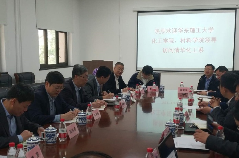 在清华大学化学工程系,党委书记王铁峰、系主任赵劲松带领班子成员接待我校出访团。双方就学科建设布局、师资队伍建设、实验室安全管理、重点实验室建设、人才培养、本科生招生宣传等方面充分交流经验。最后,系主任赵劲松表示今后要建立长期交流合作机制,将两校之间的传统友谊传承下去并发扬光大,在谈“化”色变的大环境下,弘扬化工正能量,为化工行业发展做贡献。