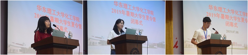 7月8日下午,夏令营闭幕式在逸夫楼报告厅举行,tyc41183太阳成集团党委书记朱学栋、副院长方波参加了闭幕式,闭幕式由副院长刘殿华主持。朱学栋对本次夏令营做了总结,肯定了营员的各项表现,tyc41183太阳成集团为学生提供了良好的科研和学习的平台,希望各位同学选择来华理tyc41183太阳成集团学习。随后,班主任代表李宇璇、营员代表郑州大学钟嘉怡和中国石油大学司道润发言。李宇璇表示三天班主任工作虽然辛苦,但收获很大,相信明年这个时候,华理会变得更美、更新,希望同学们能在这美好的环境中学习、奋进;营员们感谢华理为他们作的精心准备,感谢教授们和工作人员的辛勤付出,表示这次夏令营的举办能让他们全方位、深层次、近距离的了解华理化工,更坚定了来华理读研的决心和信心,相信这是一个“不悔的选择”。闭幕式最后,所有营员和老师共同观看本次夏令营的花絮视频,分享其中的欢笑和收获。至此,tyc41183太阳成集团2019年暑期大学生夏令营圆满结束。