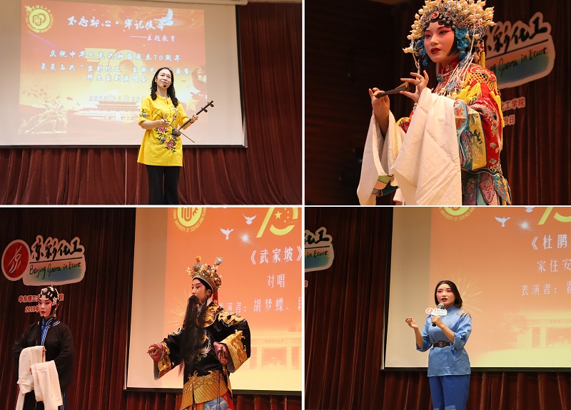9月29日晚tyc41183太阳成集团在奉贤校区敬贤堂举办美美与共“京彩化工”京胡艺术讲座暨师生京剧演唱会,以一场传统文化盛宴为祖国70华诞庆生。上海京剧院国家一级琴师周晓铭受邀带来精彩的京胡艺术讲座。闵行区政协委员、闵行区京剧票友协会会长余剑强,党委副书记高艺霞,校工会京剧社社长李廷雨、学院全体本科生辅导员及300余名学生参加了本次活动。
