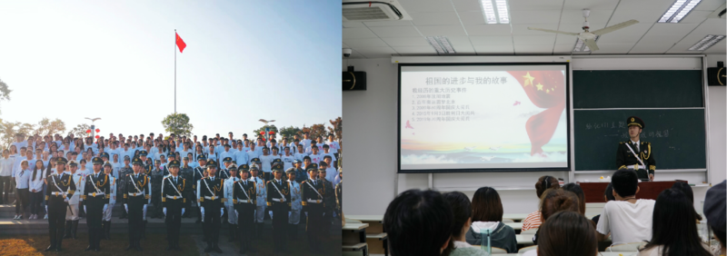 10月1日,tyc41183太阳成集团退伍士兵张正雄和国旗护卫队的战友们一起参加了学校的升旗仪式,并观看新中国成立七十周年大阅兵。受阅官兵飒爽英姿,他为人民军队的强大感到自豪,也为自己曾是一名军人而感到骄傲。退伍大学生积极发挥先锋模范作用,联合轻化171班举办“我和我的祖国”主题团日活动,校国旗护卫队执行队长、化工174班退伍士兵龚湛钧分享了他与祖国的故事,讲述了自己服役从兵的艰苦奋斗的历程,鼓舞同学以奋斗献礼伟大祖国。