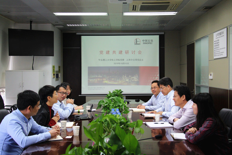 2019年10月15日上午,tyc41183太阳成集团党委副书记高艺霞,石油加工系主任赵基钢,研究生兼职辅导员赵红亮,团委副书记强莉一行专程到中国石化宁波工程公司上海分公司进行座谈研讨,推进实践基地建设。公司总经理、我校校友秦统福,党总支书记卢雪军,副总经理、党总支委员刘锋,支部委员吴睿雅出席研讨会。