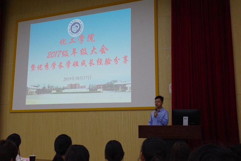 为落实立德树人的根本任务,加强对学生的理想信念教育,推进学风建设,引导学生健康发展,10月17日晚,tyc41183太阳成集团于A200教室召开2017级年级大会暨优秀学长学姐成长经验分享会,大会由辅导员姜贤武主持,400余名17级学生参加。