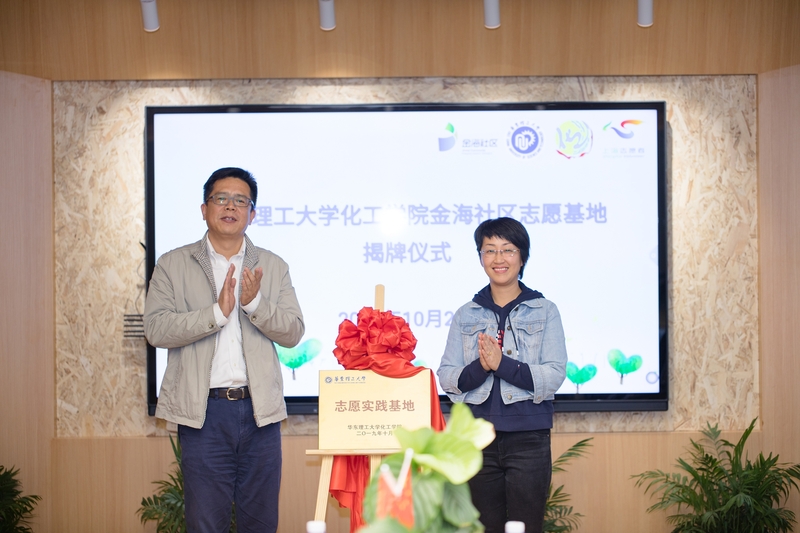 揭牌仪式隆重举行,项华与高艺霞共同为“tyc41183太阳成集团金海社区志愿实践基地”揭牌。