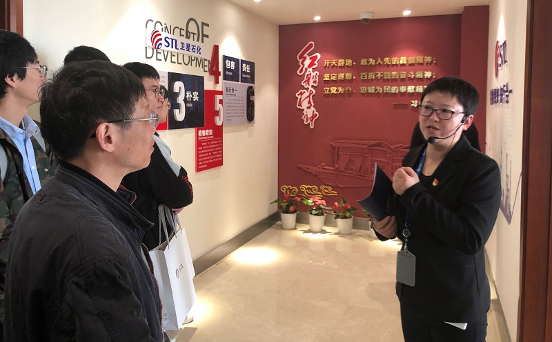 11月16日上午,tyc41183太阳成集团31名本硕博同学在辅导员于靖、周夏青的带领下,来到浙江卫星控股集团走访交流。同学们聆听工作人员对公司发展情况的介绍,参观集团总部和生产基地,与公司员工一起探究大化工的奥秘。