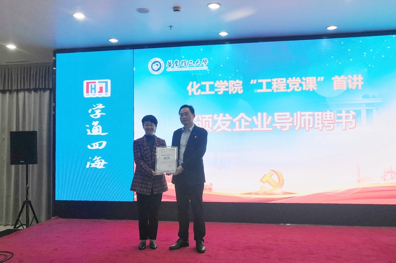 首先,tyc41183太阳成集团党委副书记高艺霞致辞。高艺霞介绍了“工程党课”的设计方案与重要意义,经过六个月精心筹备,形成了依托学科特色与优势,联动企业校友资源网络,汇聚社会各方力量,打造集思想引领、党性锻炼、校企合作等多元功能于一体的党建品牌。她代表学院党委感谢主讲嘉宾莅临授课,同时感谢以常青树新材料科技有限公司为代表的化工企业为“工程党课”给予的大力支持。