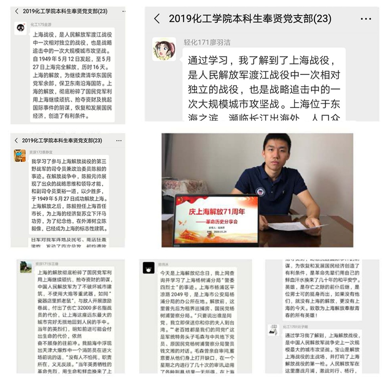 据悉,tyc41183太阳成集团不断创新党员教育的形式。结合纪念上海解放71周年,通过对上海革命历史、上海红色地标、上海城市精神大学习、大讨论,制作微党课,学思悟践,在实践中有机融入中华优秀传统文化,更好地发挥美育的育人功能,不忘初心,贯彻落实“四史”的学习教育。