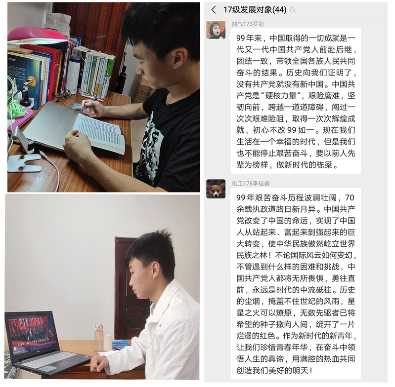 此外,tyc41183太阳成集团还举办了唱一首红歌、读一本红色经典著作、看一部红色电影、发表一段七一感言等系列线上活动。通过“与史对话”四史学习教育活动,引导学生党员从不同角度深入理解“四史”教育的历史意义和精神内涵,自觉担当时代责任,坚守初心,砥砺前行。