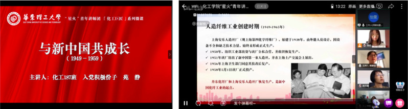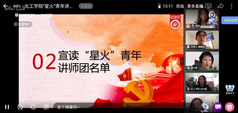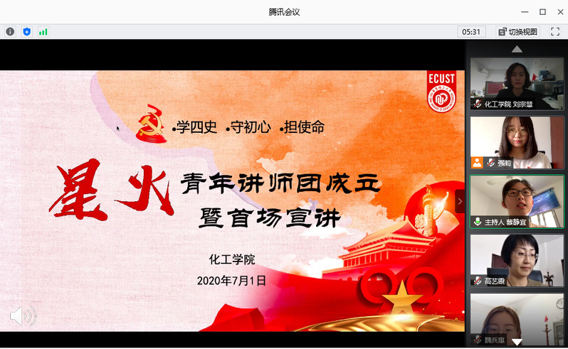 马克思主义学院党委副书记、副院长、星火社指导教师邱卫东,tyc41183太阳成集团党委副书记高艺霞出席会议,全体辅导员、“星火”青年讲师团成员、全体学生党员、入党积极分子以及团员青年通过腾讯会议、化工青年集结地站直播平台参加活动。本次活动由星火社社长蔡静宜主持,直播人气达3000余人次。
