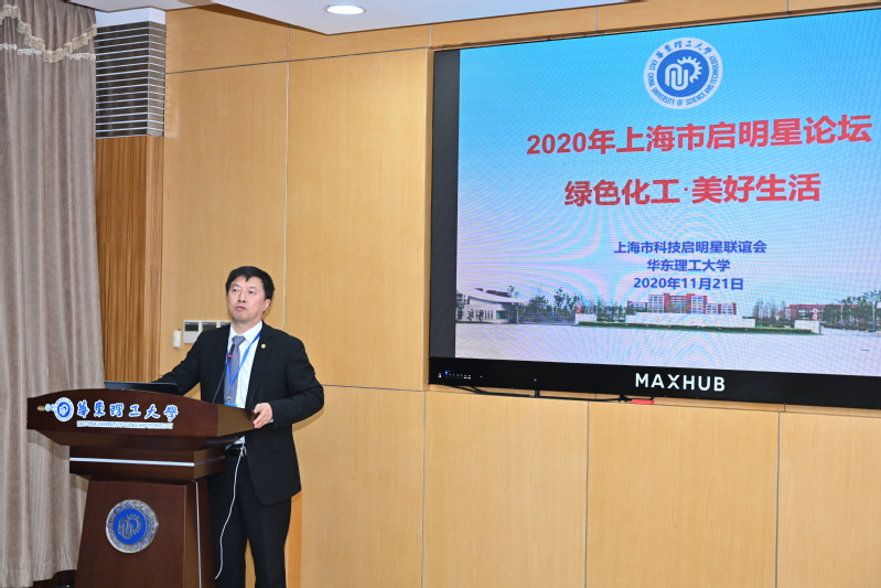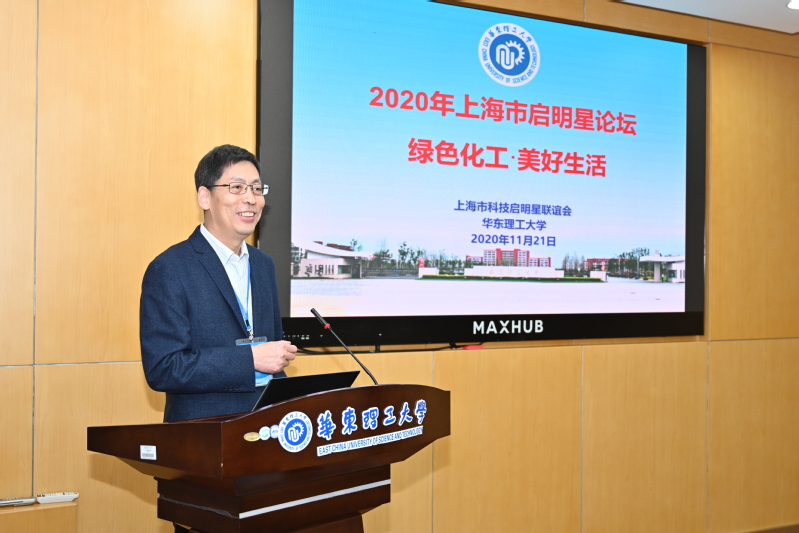 中国科学院上海硅酸盐研究所刘宣勇研究员、中国科学院上海有机化学研究所刘国生研究员和黄晓宇研究员、复旦大学步文博教授和李伟教授、上海交通大学周永丰教授、上海师范大学万颖教授、东华大学罗维教授,以及我校的江浩教授、屈雪教授和段学志教授分别作了主题报告。报告会由上海交通大学朱新远教授、上海交通大学医学院附属瑞金医院神经病学研究所丁健青研究员、同济大学吴广明教授、上海科技大学鲁雄刚教授、上海理工大学杨俊和教授主持。论坛现场氛围活跃,各位专家学者围绕“绿色化工•美好生活”的主题,结合报告展开了深入交流,并与在场的青年教师进行了探讨。