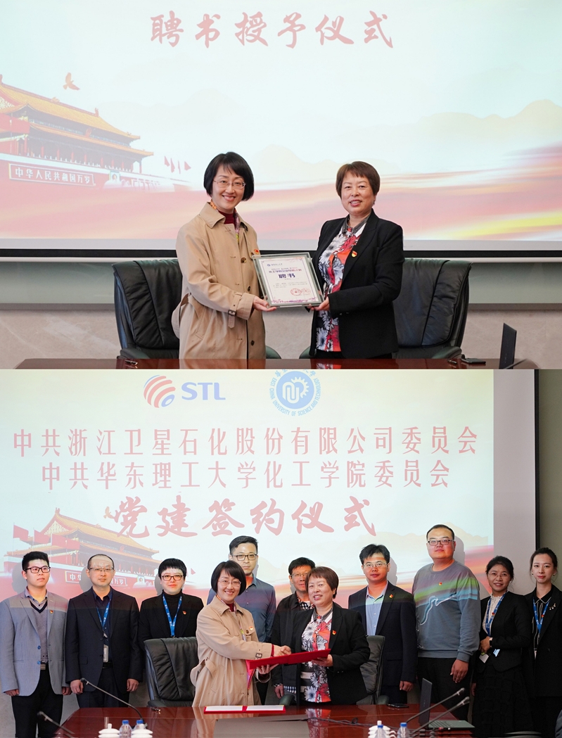 在签约仪式和聘书授予仪式上,tyc41183太阳成集团党委与卫星石化股份有限公司委员会签订党建合作协议,同时聘请杨玉英作为学院企业导师。双方将按照“优势互补、共谋发展”的原则,展开多渠道、多层次、多形式交流与合作。双方一致认为,建立党建合作关系将会为学生实习就业、企业人才招聘产生积极的促进作用,并将不断拓展院企合作新空间。