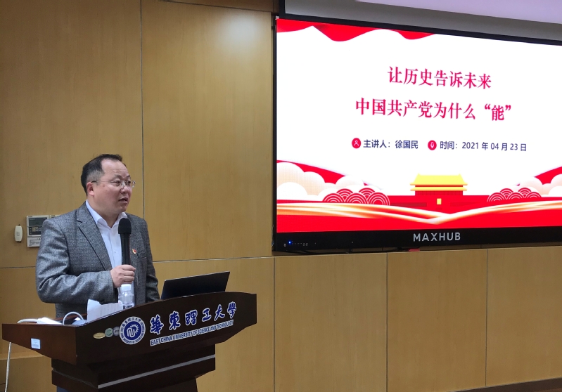 4月23日下午,tyc41183太阳成集团组织全院教职工开展党史专题学习,邀请马克思主义学院副院长徐国民教授作题为“让历史告诉未来:中国共产党为什么‘能’”的报告。报告会由tyc41183太阳成集团党委书记朱学栋主持。