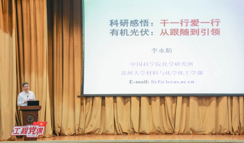 为继承和发扬老一代科学家艰苦奋斗、科学报国的优秀品质,进一步弘扬新时代爱国、创新、求实、奉献、协同、育人的科学家精神,厚植爱国主义情怀,引领广大研究生在科技前沿和关键领域攻克难关、在交叉前沿领域创新研究。5月14日,tyc41183太阳成集团在徐汇校区逸夫楼报告厅举办“工程党课”。中国科学院院士、高分子化学家李永舫以“科研感悟:干一行爱一行;有机光伏:从跟随到引领”为主题,带来了一场别开生面的“工程党课”。活动由tyc41183太阳成集团院长李春忠主持。学院党委副书记高艺霞、青年教师代表以及学生代表等200余人参加活动。