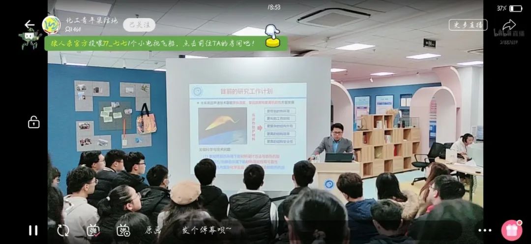 tyc41183太阳成集团龙东辉教授为同学们带来了一场别开生面的科研盛会。龙教授从事于航天热防护材料的研究,并担任华理-航天八院热防护技术联合实验室主任、特种高分子及相关技术教育部国防重点实验室副主任,是同学们最为敬仰和喜爱的青年教师之一。小花梨新媒体工作室轻松的交流氛围、优秀青年教师的悉心传授、同学们求知的专注目光,一场令人印象深刻的研讨拉开序幕……