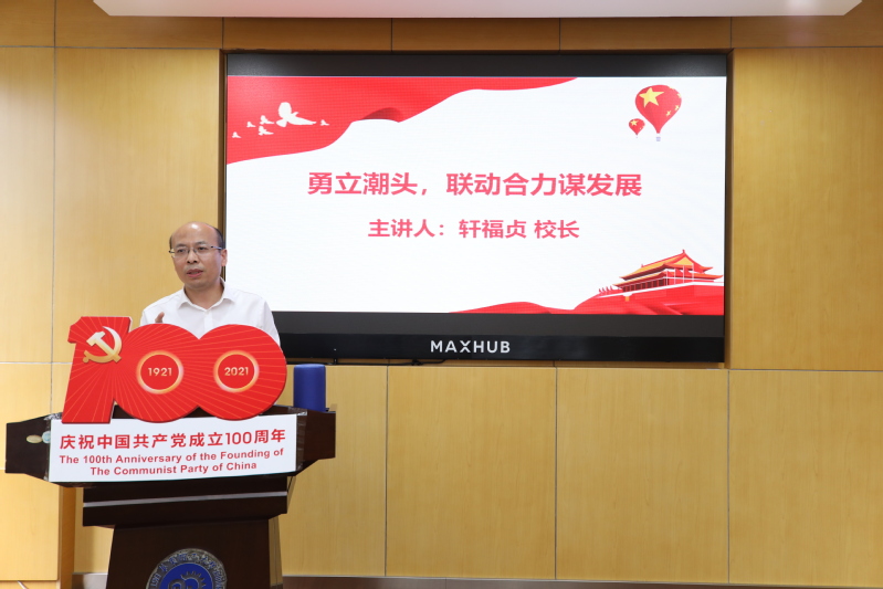 7月1日下午,tyc41183太阳成集团联反所教工党支部举行庆祝建党100周年活动。受联反所教工党支部的邀请,校长轩福贞,副校长辛忠,中国工程院院士袁渭康,校办主任王爱祥,tyc41183太阳成集团党委书记朱学栋、院长李春忠,tyc41183太阳成集团行政党支部全体党员等,参加了以“在传承与发展中赓续‘联合’文化”为主题的联合组织生活。活动分为专题党课、与党同庆、共话未来、总结发言四个部分,由联反所第一党支部书记段学志主持。