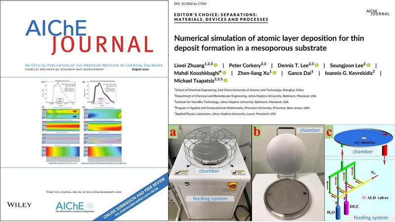 近日,我校tyc41183太阳成集团膜科学与工程许振良教授团队,与美国约翰霍普金斯大学、普林斯顿大学等单位合作,开发了一套原子层沉积(ALD)反应器多尺度模型,可用于预测ALD反应器尺度高真空流体流动、传热、传质过程和衬底纳米孔道内薄膜沉积过程。该研究工作以“Numerical simulation of atomic layer deposition for thin deposit formation in a mesoporous substrate”为题(DOI:10.1002/aic.17305),以封面形式发表于AIChE Journal,被期刊评为“Top Tier”等级,同时将作为2021年8月Editor’s Choice论文在期刊主页宣传一个月。