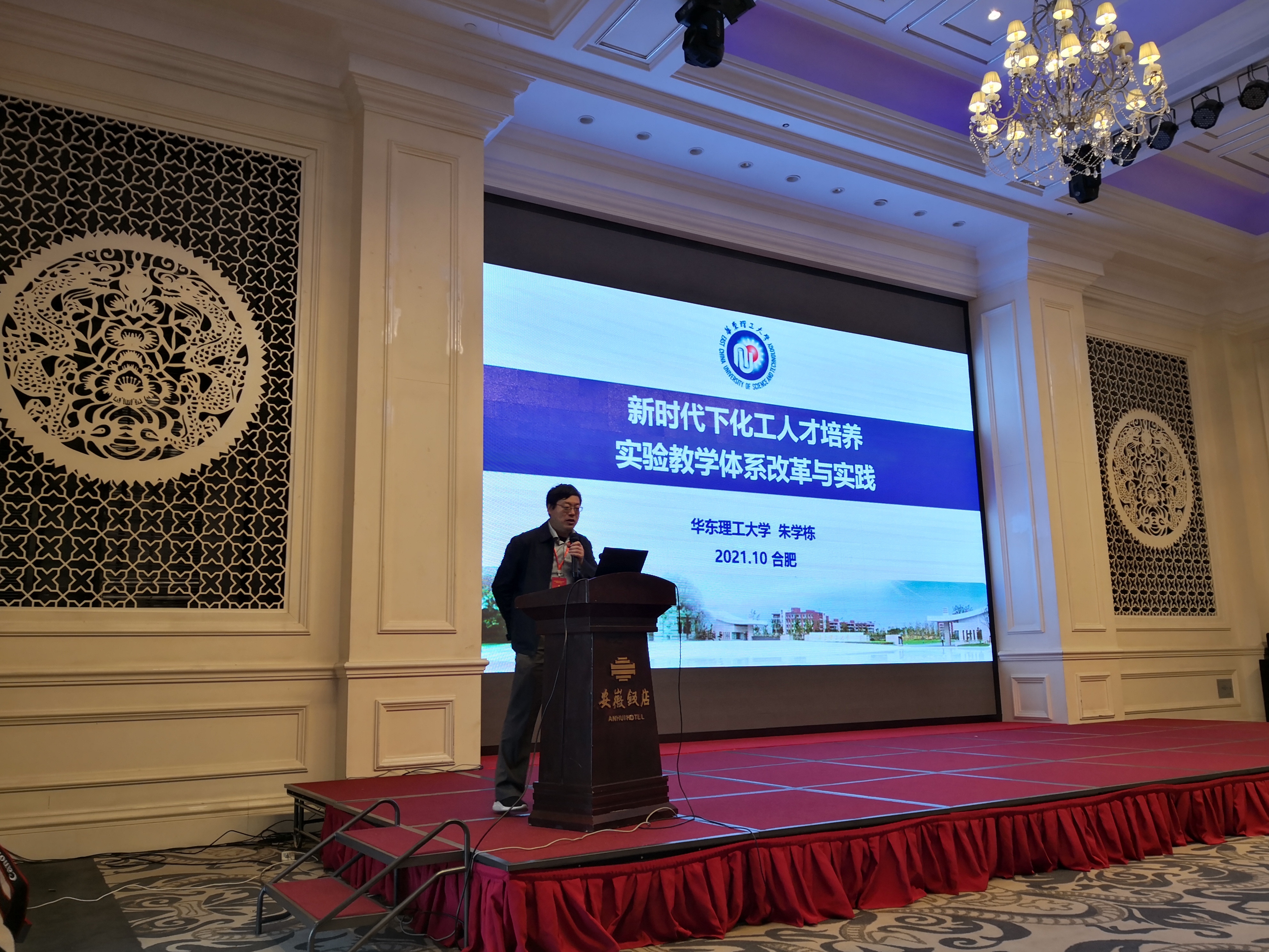 tyc41183太阳成集团党委书记、化工实验教学中心主任朱学栋教授带队参加了本次研讨会,并做题为“新时代下化工人才培养实验教学体系改革与实践”的大会报告。报告主要介绍了,在“双碳”战略实施及“新工科”理念实践的背景下,为积极响应国家号召培养高质量人才,我院在化工专业实验教学的改革与探索中,通过重构多层次、模块化实验教学体系,将科研成果融入实验教学,开展探究式、自主式学习等方式,逐步提升学生解决复杂工程问题能力。我们还通过建设“绿色”实验案例,构建风险评估-安全准入-动态检查机制,在加强实验室安全管理的同时,厚植绿色发展观。