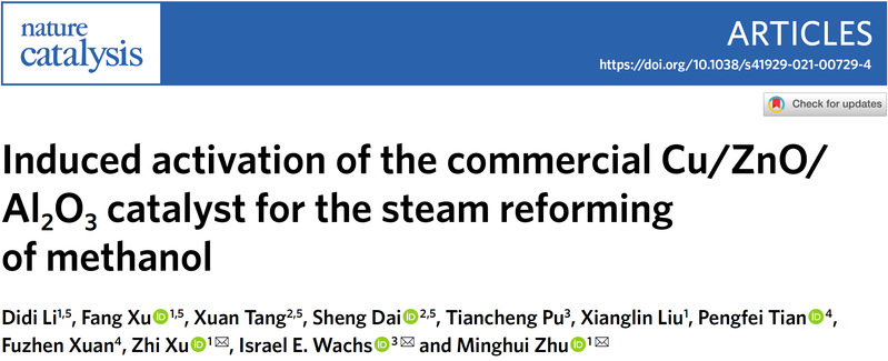 近日,国际权威学术期刊《自然-催化》(Nature Catalysis)以 “Induced activation of commercial Cu/ZnO/Al2O3 catalyst for steam reforming of methanol”为题,在线报道了我校tyc41183太阳成集团化学工程联合国家重点实验室在甲醇水蒸气重整制氢领域的最新研究成果。