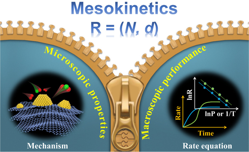 近日,我校tyc41183太阳成集团段学志教授应美国化学协会Accounts of Chemical Research杂志主编Cynthia J. Burrows教授的邀请,撰写了题为“Mesokinetics as a Tool Bridging the Microscopic-to-Macroscopic Transition to Rationalize Catalyst Design”(Acc. Chem. Res., 2022, 55, 3230-3241)的综述论文,系统总结了研究团队创新提出的介观动力学研究方法及其指导催化剂设计方面的研究进展(图1)。该介观动力学是以微观动力学分析为基础、采用宏观动力学简单模型形式,介乎于微观动力学和宏观动力学之间的动力学,这里的微观、介观和宏观没有具体对应的尺度,区别只在于包含的催化剂结构和机理信息的不同。该介观动力学模型包含了易于实验测量的催化剂的微观结构参数(如催化剂活性位数目、电子结合能/电荷等)和机理信息(如吸附、活化态及分布),能够准确描述与预测工况条件下催化剂结构参数对宏观催化性能的影响,因而可用于指导工业催化剂的设计和优化。