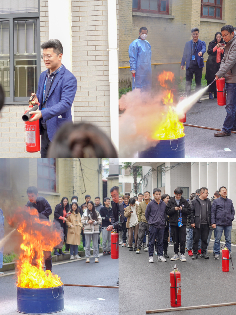 宣讲结束后,凌昊通过有奖竞猜的方式帮助大家再次回顾、巩固了所学的消防安全知识,现场师生踊跃回答。随后,全场师生来到图书馆西侧进行实地灭火器使用学习,段凯洋示范了“提、拔、握、压”的灭火器使用四字口诀,师生们依次排队进行灭火器的使用实操,切身掌握灭火器的使用方法。
