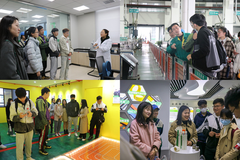 交流会结束后,师生在工作人员的引导下参观了企业园区的样板间、检测中心、管件车间及管道车间,严而有序的生产流程、自动化和信息化同步的设备以及融合创新的各类产品,为此次互动带来了充实的体验。在参观过程中,同学们结合自身专业就实践和实操方面踊跃提问。智慧化工2206班顾毅罡在参观后表示:这次活动让我对化工有了更深刻的认识,对未来行业发展也有了更清晰的认识,期待能有更多的机会将理论联系到实践中。