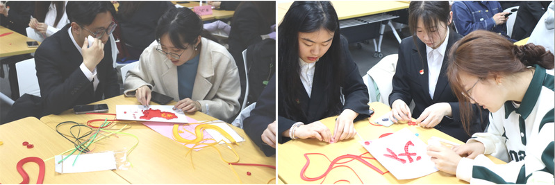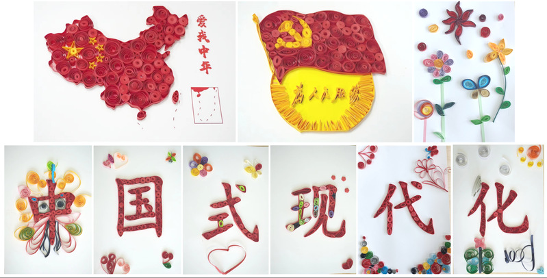 入党宣誓仪式结束后,全体党员和入党积极分子用衍纸点亮入党初心。他们将五颜六色的衍纸条进行卷曲、弯曲和捏压,亲手制作出“中国共产党党徽”“中国地图”图案及“中国式现代化”字样,并送上对党和国家、对华理和tyc41183太阳成集团的美好祝福。