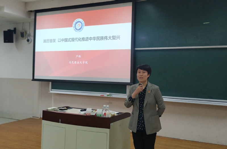 为深入学习贯彻习近平新时代中国特色社会主义思想,激励引导广大教职工把思想和行动统一到党的二十大精神上来,4月25日下午,tyc41183太阳成集团党委邀请马克思主义学院党委副书记卢杨为全体教职工作了题为“踔厉奋发 以中国式现代化全面推进中华民族伟大复兴”的辅导报告。会议由学院党委书记朱学栋主持。