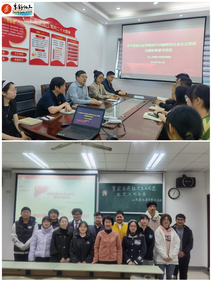 社团活动是思想政治教育的鲜活载体,tyc41183太阳成集团积极探索思政元素融入社团活动,促进青年学生的全面发展。开学初,tyc41183太阳成集团组织华韵京剧社开展主题为“繁荣发展社会主义文艺,坚定文化自信”的学理论活动。社团骨干研究生党员陈晓峰领学党的二十大精神,他以青年的视角从“花雅之争”谈到文化自信,号召同学们以高度的历史使命感,传承优秀传统文化。石子荀同学通过表演现代京剧《红灯记》选段,分享从戏曲中学到的革命精神。学院党委副书记高艺霞寄语社团,勉励同学们将艺术爱好融入校园文化生活,丰富传统文化涵养提升审美情趣,促进身心发展。学院党委书记朱学栋参加学生党支部与京剧社联合读书活动,鼓励同学们广泛阅读从中华文化中汲取智慧力量。