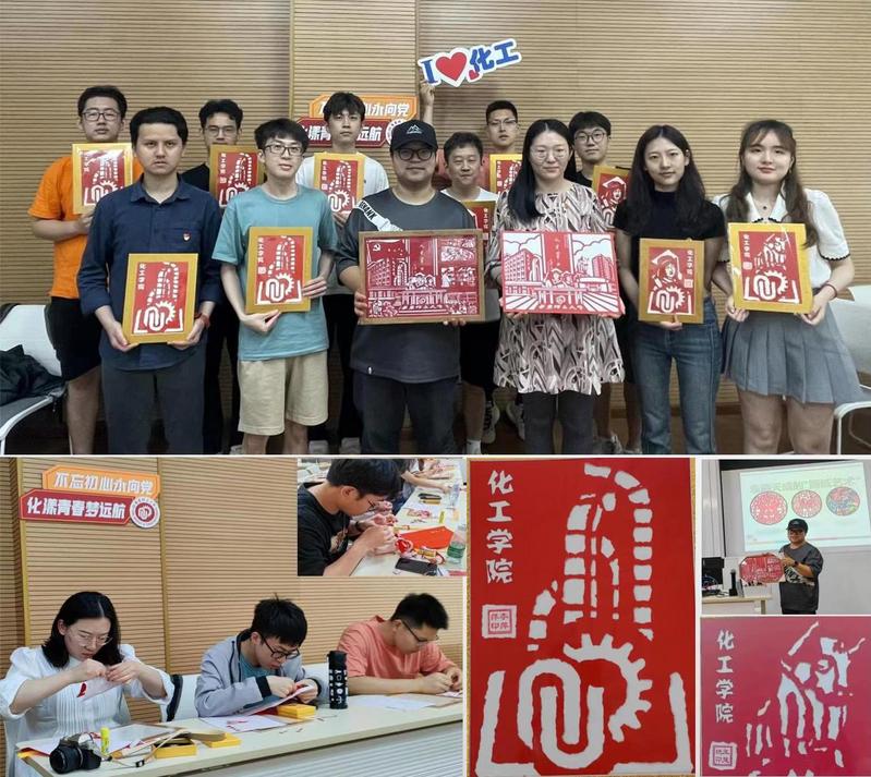 共享一节实践党课、逐梦红心。6月8日下午,非遗“南桥撕纸”第二代传承人何玉玮老师以撕纸的艺术发展脉络诠释中国式现代化的生动实践,带来一节别开生面的红色党课。课堂上,展示了多种多样风格迥异的撕纸作品,有传统文化中京剧的小脸谱创作,有现代标志性建筑设计,还有鲜活的抗疫故事。一个个看似平凡实则不简单的作品,是中国式现代化在非遗美学中的生动写照。在实践环节,同学们在感受到浓厚的创作气息后,回忆过去校园生活的点滴,爱校荣校之情油然而生。在何老师指导下,部分党员以攀登碑、孺子牛等学校标志性的建筑为灵感,创作撕纸作品。很多同学的作品上还印下了学院为毕业生特别定制的姓名章,现场气氛热烈。通过互动式、体验式的实践党课,让校园文化和非遗文化互相交织融合,以非遗文创作品涵养爱校荣校之情。