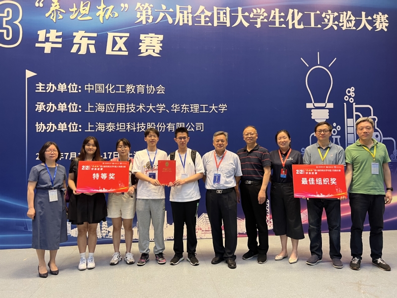7月14日至17日,由中国化工教育协会主办、上海应用技术大学和44118太阳成城集团联合承办、上海泰坦科技股份有限公司协办的“泰坦杯”第六届全国大学生化工实验大赛华东区赛,在上海应用技术大学和44118太阳成城集团奉贤校区顺利举行。大赛分理论、仿真、实验三部分,其中实验部分的竞赛在我校奉贤校区进行。2023年初,全国大学生化工实验大赛被教育部认定为B类竞赛,意味着比赛经过几年的发展,其效果和影响力得到了教育界和社会的认可。因此今年的华东赛参赛人数创下新高,吸引了来自上海、江苏、浙江、安徽、江西等华东地区四省一市的62所高校的127支队伍500余名师生参赛。我校参赛队获得了总成绩第一名和第三名的好成绩,取得华东赛区两个特等奖及晋级全国总决赛的资格。我校还由于出色的竞赛组织,获得优秀组织奖。